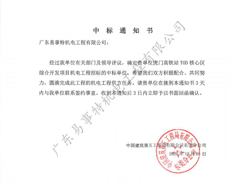【喜訊】易事特機電成功中標虎門高鐵站TOD核心區綜合開發項目機電工程